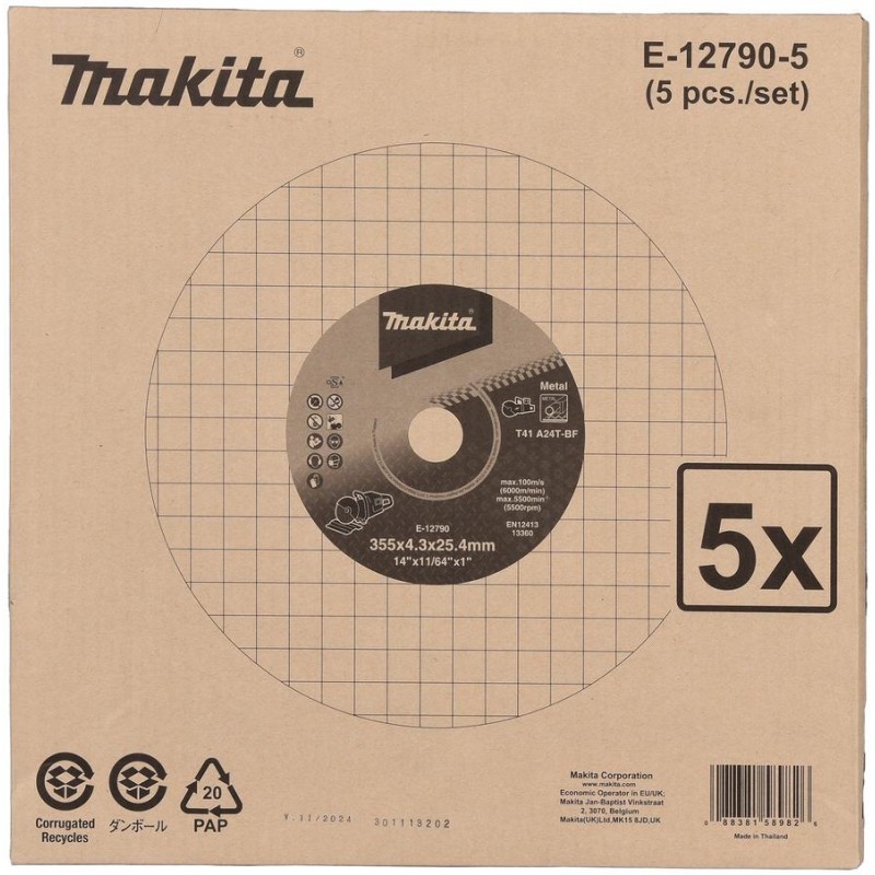 MAKITA E-12790-5 kotouč řezný ocel 355x4.3x25.4, 5ks
