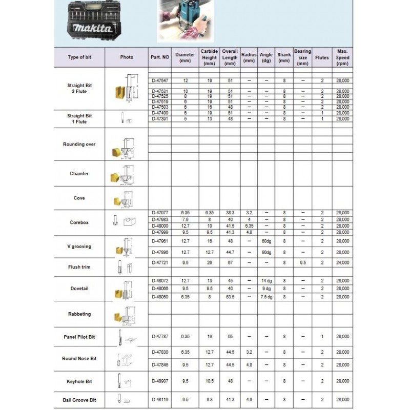 MAKITA D-74784 sada frézek 8mm 22ks po zanořovací frézy