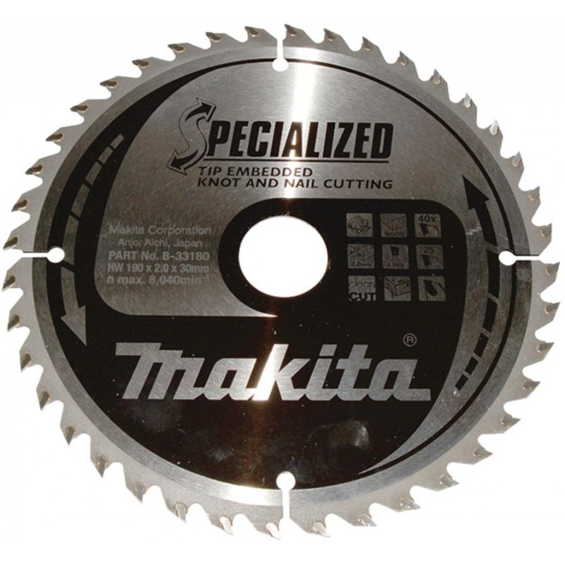 MAKITA B-33180 kotouč pilový dřevo SPECIALIZED se zapuštěnými zuby 190x2x30mm 40Z , old B-09503