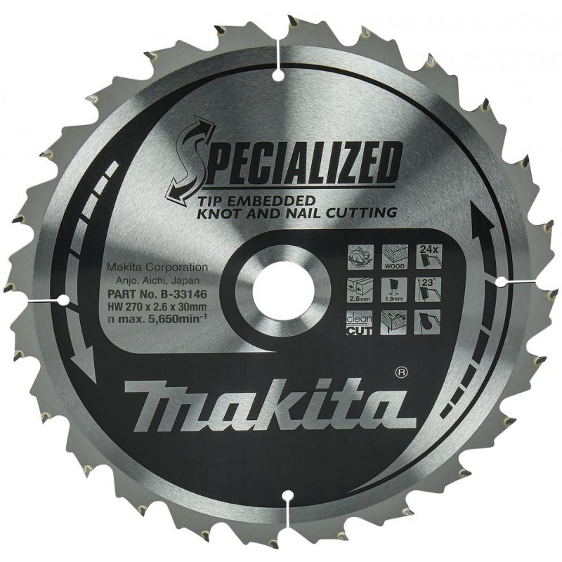 MAKITA B-33146 kotouč pilový dřevo SPECIALIZED se zapuštěnými zuby 270x2.6x30mm 24Z , old B-09450