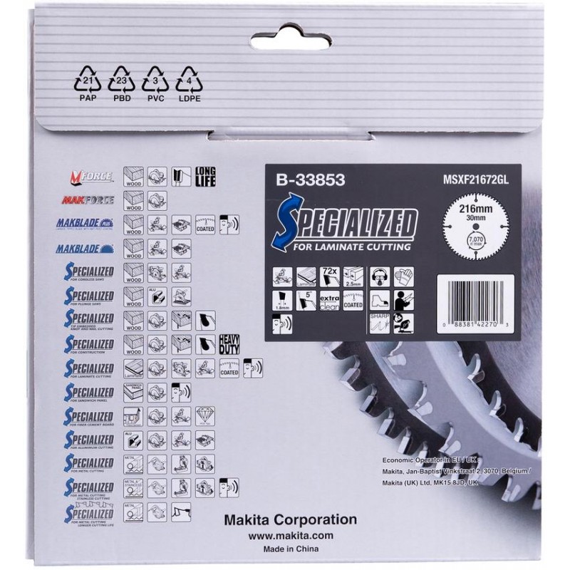 MAKITA B-33853 kotouč pilový lamino SPECIALIZED 216x2.5x30mm 72Z , old B-29474