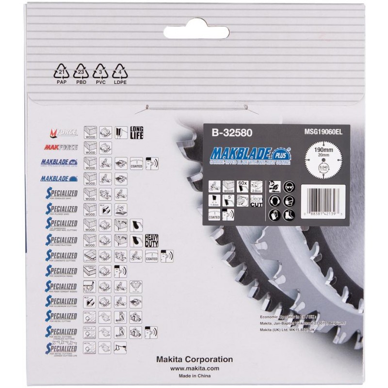 MAKITA B-32580 kotouč pilový dřevo MAKBLADEplus 190x2x20mm 60Z , old B-08757