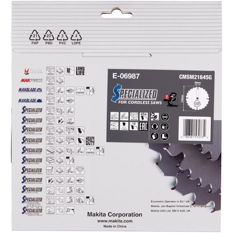 MAKITA E-06987 kotouč pilový dřevo Efficut 216x2x30mm 45Z , old E-06971