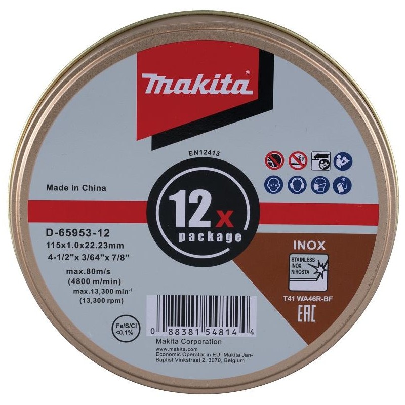 MAKITA D-65953-12 řezný kotouč 115x1.2x22.23 nerez bal12ks