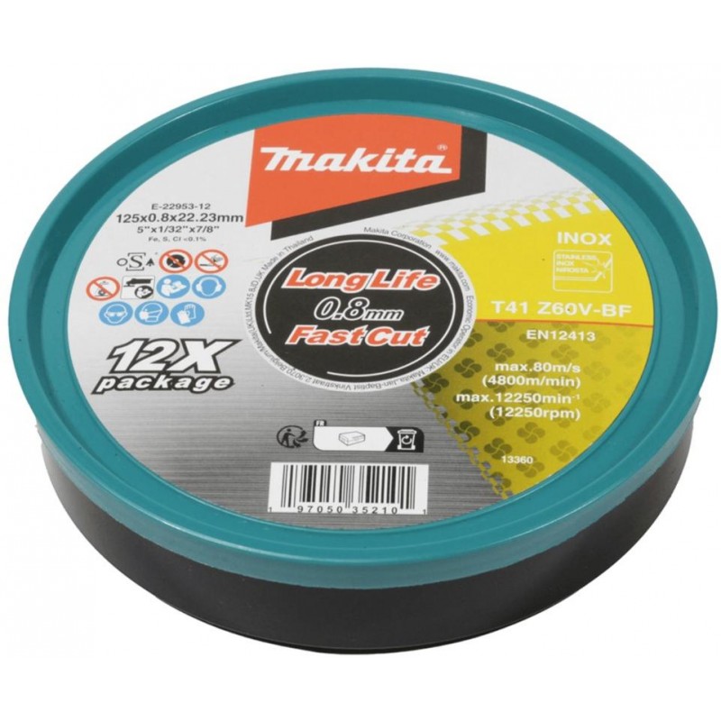 MAKITA E-22953-12 kotouč řezný nerez 125x0.8x22.23mm, 12ks,oldE-22953 E-10877-12