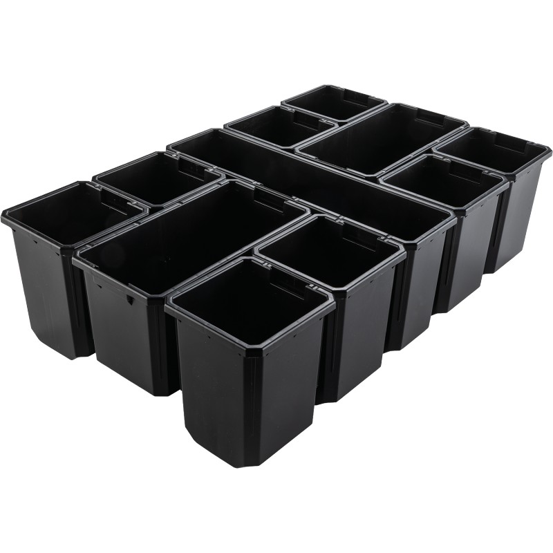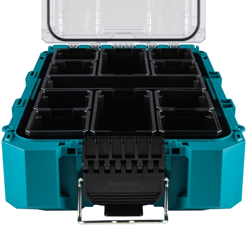 Organizér je vyroben z kopolymeru odolného proti nárazu, aby odolal nejnáročnějším podmínkám na pracovišti. Hluboké přihrádky s oddělovacími štěrbinami mají různé délky a přihrádky se do sebe zasunují pro větší optimalizaci prostoru. Nosnost 23 kg, objem 18.4 l Až o 40 % větší kapacita ve srovnání s předními konkurenty Průhledné víko pro snadný pohled dovnitř a žebrovaný design zajišťuje přihrádky proti pohybu 11 vyjímatelných přihrádek organizéru pro všestranné skladování Hluboké přihrádky s dělicími otvory pojmou různé délky Příslušenství pro rozdělovač a horní zásobník pro více prostoru [prodává se samostatně] Koše se skládají dohromady pro větší optimalizaci prostoru Velké západky vhodné pro práci v rukavicích Robustní pohodlná rukojeť pro přenášení Kovové zesílené uzamykací body a skrytý slot Security Tracker